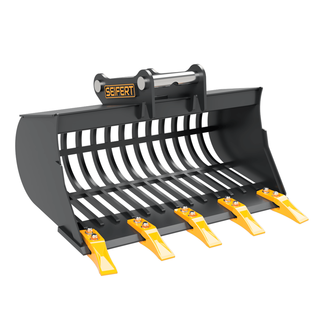 For sale is a brand new Sorting Bucket with SB03S Adapter. The Sorting Bucket is ideal for various sorting and loading jobs. With a grid spacing of 45mm, various rocks and other building materials can be screened out . The use of wear and abrasion resistant steels enables very long service lives. The SB03S Adapter is suitable for MS03 (Symlock), which means that the Bucket can be used as a low and high bucket. " made of wear-resistant S355J2+N as well as HB400 " protruding cutting edges protect weld seams and side parts " high-quality paint " with transport hook " 1-year guarantee on weld seams " excellent price-performance ratio Not the right one? Our range includes attachments of all kinds - also for heavier weight classes up to 30t. Please contact us!